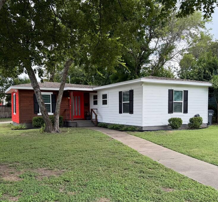 Pop in, plop down, and get cozy in this charming 2-br, 1.5-bath home — the latest addition to the highly-rated Poppy & Rye family. This adorable bungalow is centrally located, just a short 2 minute drive to downtown Waco, Baylor University, and Magnolia Market. Cozy up around the fire pit, whip up a meal in our well-appointed kitchen, and be inspired among creatively curated decor. Locally owned and operated by mom-and-son super hosts, Dana & Rye! OFFICIALLY LICENSED #STR000444-04-2025