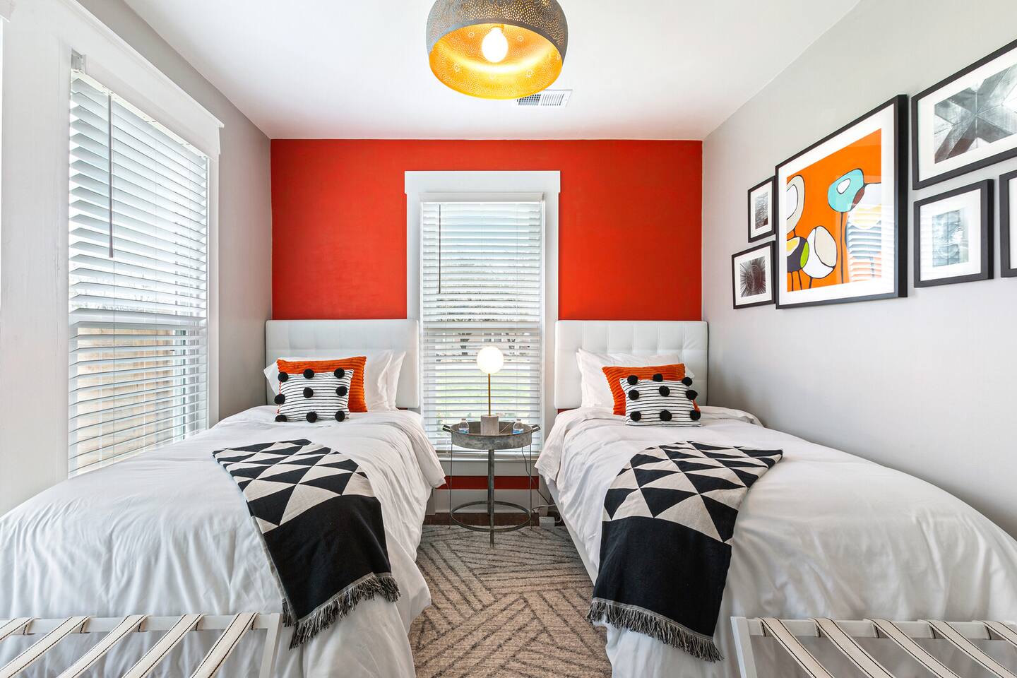 LOCATION! LOCATION! Only 1 block and a 2-minute walk to Magnolia, this adorable 1955 cottage has all new everything! You’ll love the fun boho decor and one-of-a-kind design details. 🏡 This little gem is packed with so many extras, you won’t believe it’s only 720 sq. feet! 2-BR/2 (full!) baths, sumptuous linens 😴, luxury mattresses 🛌, fresh appliances 🍳, outdoor firepit 🔥, enclosed patio with grill 🍔, hot-tub 💦, cozy seating 🌿, and not one, but TWO, outdoor living spaces. Woot!
