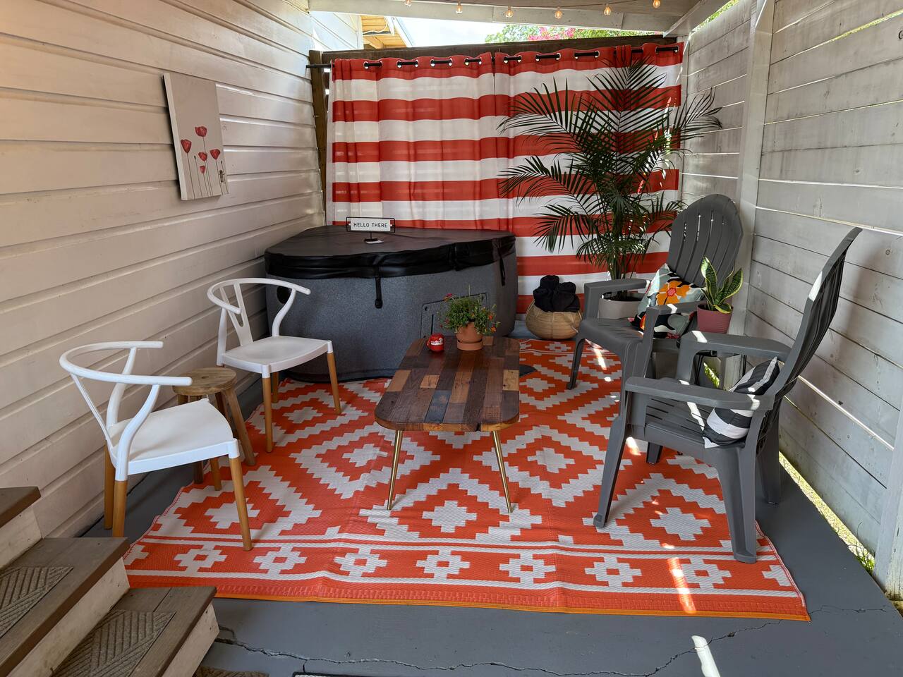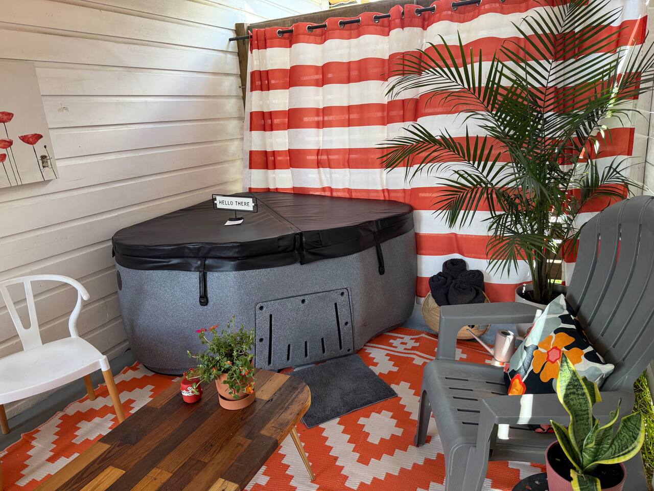 - Hot tubs are wonderful, but water is water. So use caution, especially with kids. 1) NEVER leave the hot tub lid off when not in use. 2) ALWAYS stay within arms reach of your kids. 3) BE CAREFUL if drinking — hot water and alcohol are NOT great dance partners. - Potential for noise from live music on Friday & Saturday nights from an outdoor venue, The Backyard, a block over. - Are the dates you're looking for unavailable? Check our other Airbnb just down the street, Poppy & Rye House (sleeps 6). Or check our cozy new spot — Poppy & Rye Bungalow (sleeps 4), just two miles away.
