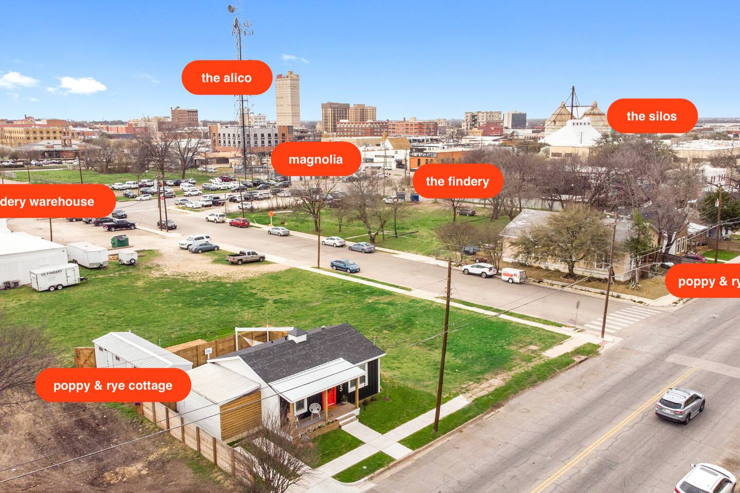 OFFICIALLY LICENSED AS A SHORT TERM RENTAL WITH THE CITY OF WACO: License # STR000060-01-2025 You've never seen a place quite like Poppy & Rye Cottage -- the spunky little sister to Poppy & Rye House -- our other popular, highly-rated Airbnb in Waco. Brought to you by mom-and-son superhosts, Rye & Dana Gage, the Cottage is fun and fresh, with a crisp black & white backdrop blended with warm wood tones and accents of bright poppy red. Unique handcrafted pieces, created by Rye (owner and Harp Design Co-trained woodworker), are featured throughout. The Cottage is a two minute walk to Magnolia, The Findery, The Backyard — and a quick drive (or leisurely walk) to Baylor, the Brazos riverfront and Austin Avenue. Shop 'til you drop, then come home and cozy up around the firepit, fire up the grill, enjoy a glass of Poppy wine, stargaze in the hammock, gather for a meal on the patio, or play some ping pong on our handcrafted table! Poppy & Rye Cottage is the perfect little place to tuck away for your Waco getaway.